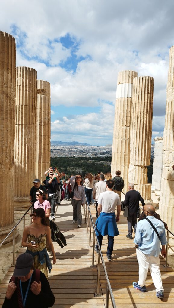 Wir haben das Hotel INTERKONTINENTAL gebucht, das in einem lebhaften Viertel der Stadt liegt. Schon auf dem Weg zum Hoteleingang entdeckten sie: Straßenhändler, die Gewürze verkauften, eine Katze, die träge auf einer Treppenstufe lag, Kaffeehäuser, deren Stühle sich auf den Bürgersteig ergossen. Und überall, wenn man den Blick hob, sah man sie – die Akropolis. Hoch oben auf dem Felsen, golden im Nachmittagslicht, wie ein Zeichen, das diese Stadt sich selbst gegeben hatte.