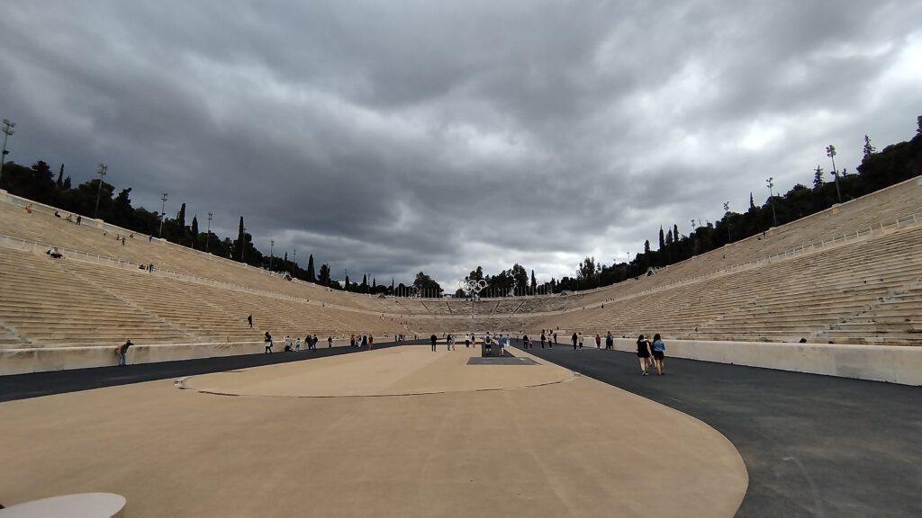 Das Panathenäisches Stadion in Athen ist ein beeindruckendes Bauwerk der Antike, das vollständig aus hellem Marmor errichtet wurde. Es besitzt die typische hufeisenförmige Gestalt griechischer Stadien und bot schon damals Platz für zehntausende Zuschauer. Ursprünglich im 4. Jahrhundert v. Chr. angelegt, wurde es später prachtvoll erneuert und diente als Austragungsort sportlicher Wettkämpfe und feierlicher Veranstaltungen. Seine heutige Form verdankt es der Restaurierung für die Olympische Spiele 1896, wodurch es weltweite Bekanntheit erlangte.