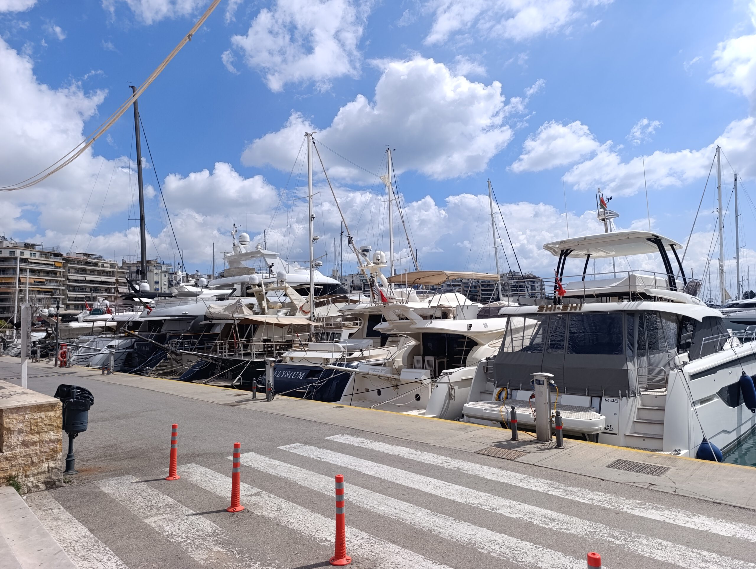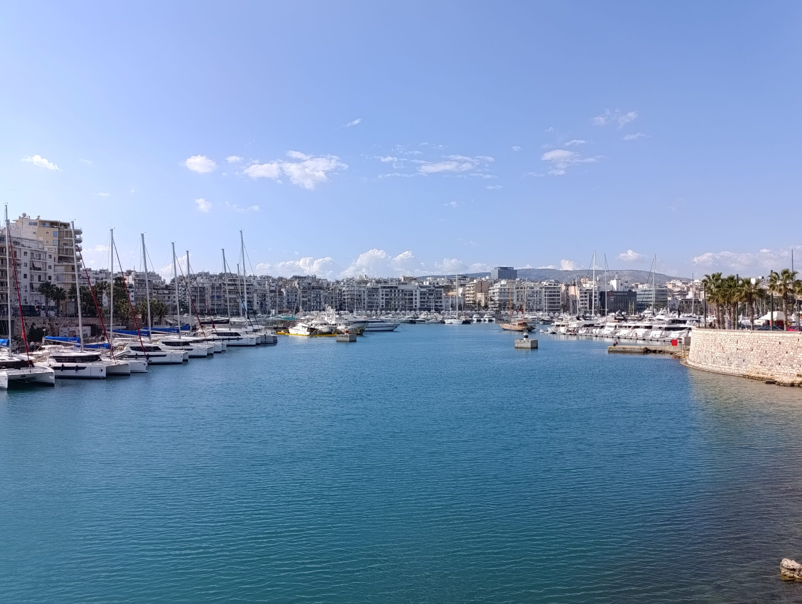 In Piräus angekommen, liefen sie an der Marina entlang. Es ist eine ganz besondere Atmosphäre. Kleine, große und ganz große Jachten liegen dort vor Anker. Die meist weißen Schiffe unter dem blauen Himmel strahlen eine ganz besondere Ruhe aus.