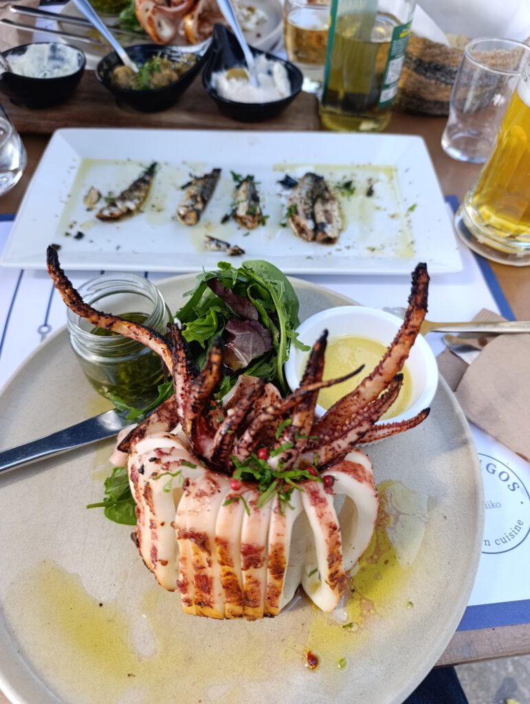 An der Kaimauer gibt es einige Restaurants. Rainer schlug vor, dort zum Abendessen zu bleiben. Sie setzten sich in ein schön anmutendes Restaurant, studierten die Speisekarte, die zahlreiche Meerestiere aufwies. Nach dem Kartenstudium guckte Rainer hoch und stellte fest: „ Na, da haben wir ja wohl des richtige Restaurant ausgesucht“. Beide bestellten Calamares von Grill und dazu noch Sardellen und Wein. Es war nicht nur vorzüglich gegrillt, es war auch optisch ein besonderer Leckerbissen.